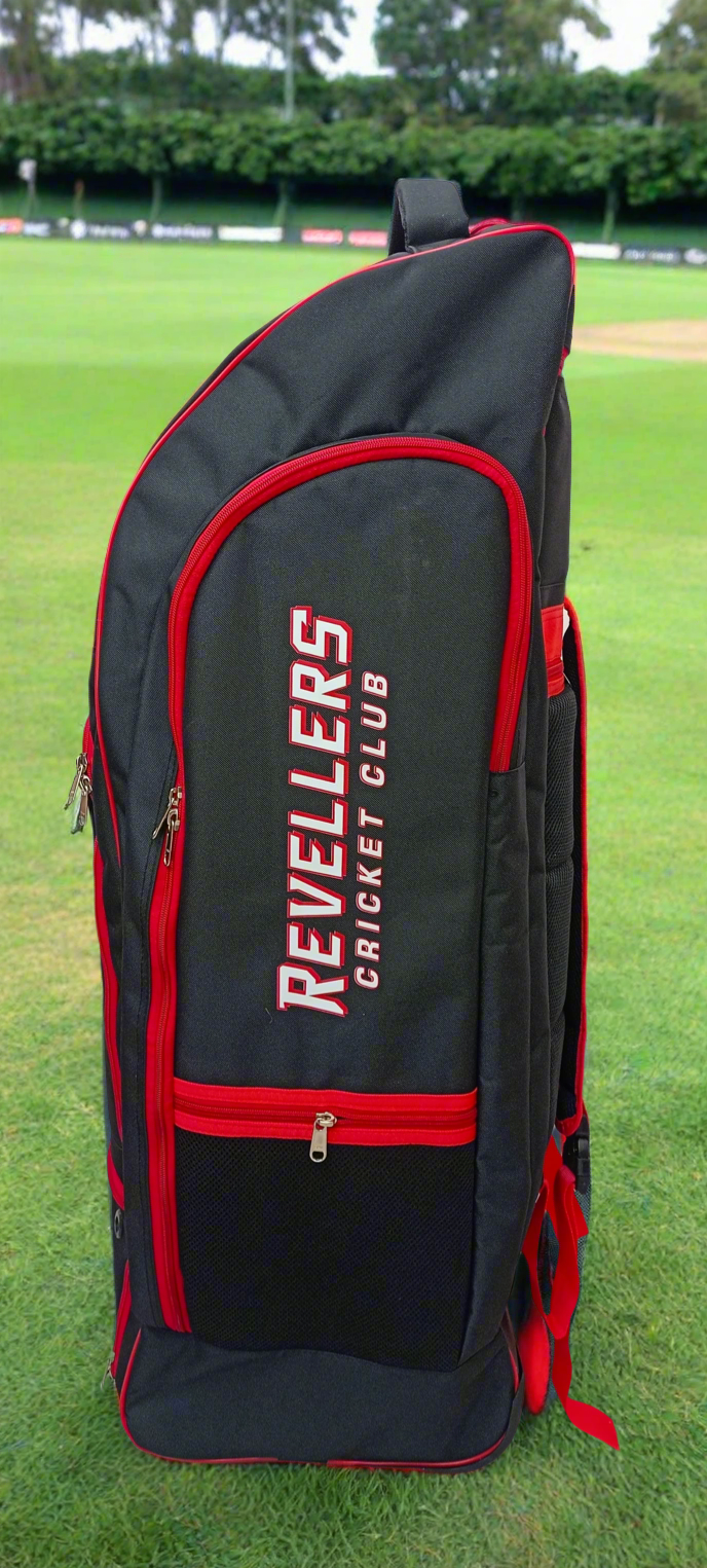 Travel with ease and efficiency using the CHUGS Customized Wheelie Kit Bag. Designed for athletes, this bag offers a spacious main compartment, padded bat compartments, and a separate shoe/helmet compartment. Its durable material, padded back and side walls, and convenient wheels make it the perfect travel companion.