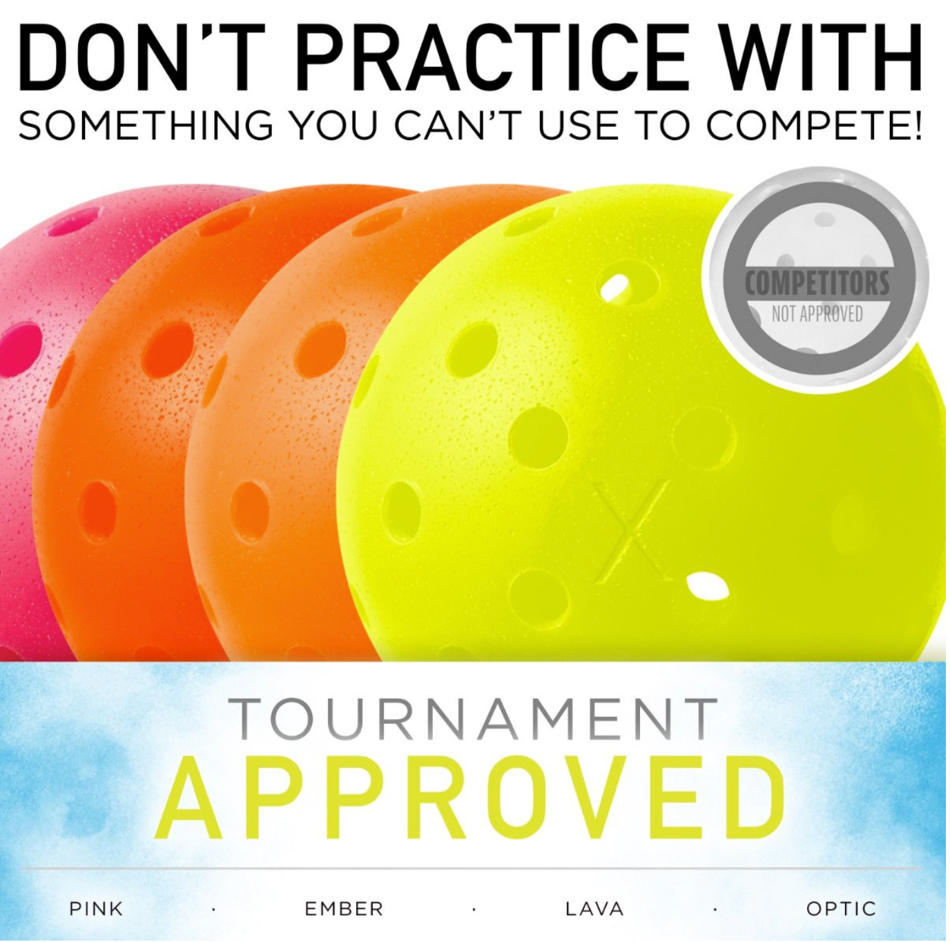 The USA Pickleball approved X-Performance 40 Pickleball-X balls are one of the finest balls ever created for the sport of pickleball. Using only the best PE material and our advanced single piece design, this ball will withstand hours of the most aggressive play. The X-Performance 40 balls deliver a superb flight path thanks to the precision of our machine drilled holes. Perfectly weighted and sized, these balls will certainly impress anyone on the court! The X-40 is now the Official Ball of the US Open Pickleball Championships!