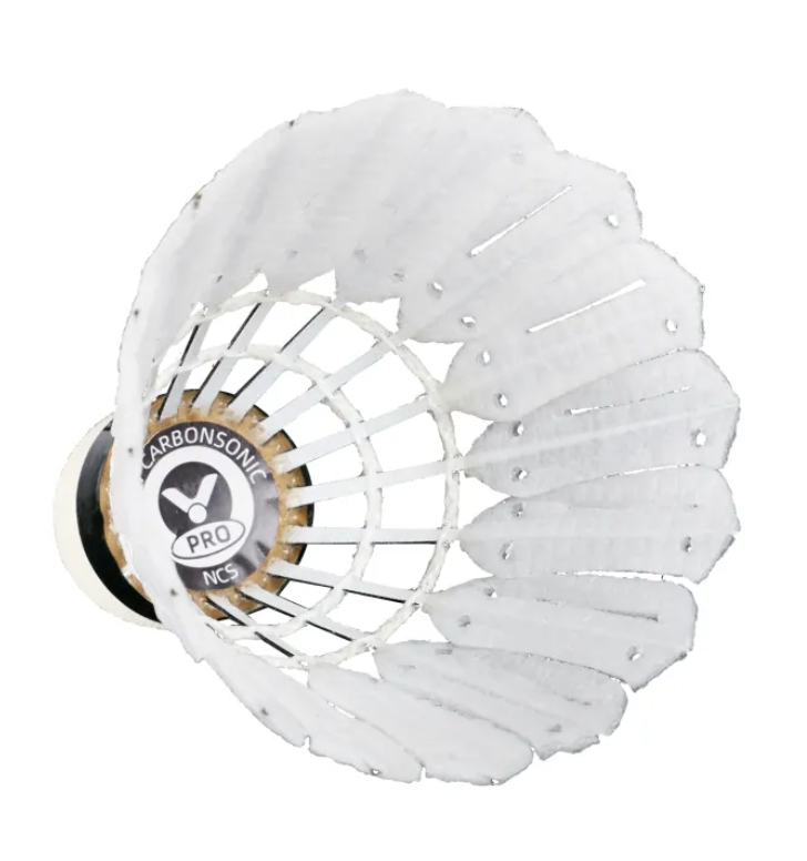 Victor's NEW CARBONSONIC PRO 2025 Edition delivers tournament-grade performance in a 12-pack. Engineered with synthetic feathers and carbon fiber composite stems, these shuttlecocks combine featherlike flight characteristics with enhanced durability. Three strategically positioned air vents optimize aerodynamic stability, while precision weight balancing ensures consistent trajectory and crisp impact feel. The patented feather design provides superior control and responsiveness across competitive and recreational play.
