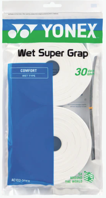 Yonex WET SUPER GRAP OverGrip (30 WRAPS) delivers superior control by combining a tacky surface with excellent shock absorption and moisture-wicking properties. Trusted by players since 1987, it enhances grip stability and comfort, allowing precise racquet handling during intense play. Perfect for those who demand consistency and confidence in every swing.